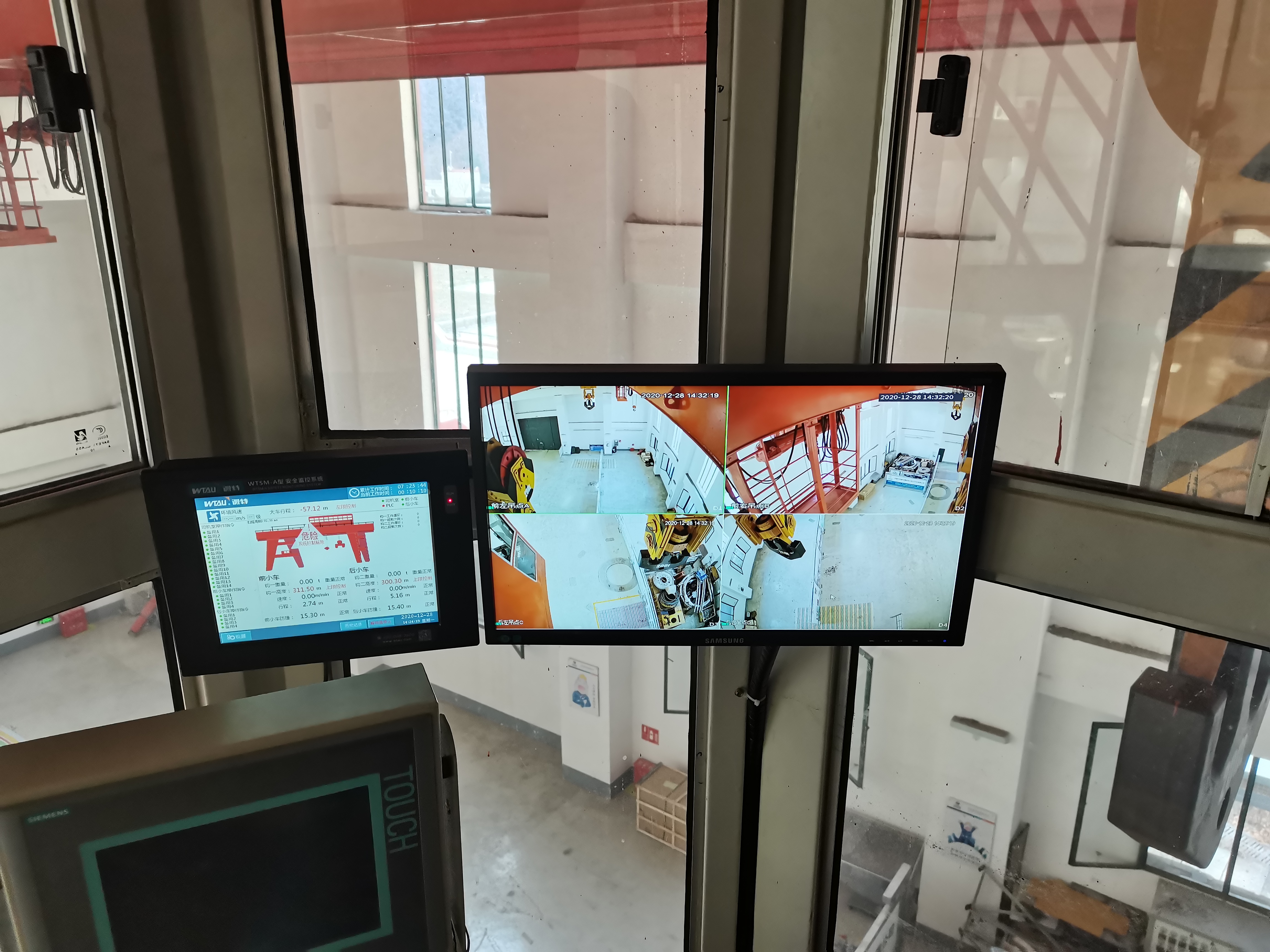 實現了在司機室實時顯示起重機各機構數據,并清晰的顯示大車行走、吊點等監控區域的監控畫面。同時,完成數據及視頻畫面的存儲,使司機在操作設備時可以更直觀的了解整車設備的運行情況,實時的做出相應的決策。為吊裝工作的可靠性,橋機運行的安全性提供了一份可視化的保障。