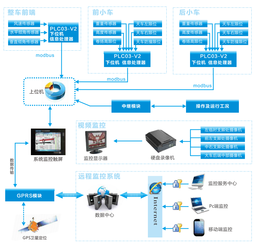 此次設備配套了數據監控和視頻監控,視頻監控布置在吊機各個安全隱患較大的位置,并在司機室安裝了帶有語音對講功能的半球機。