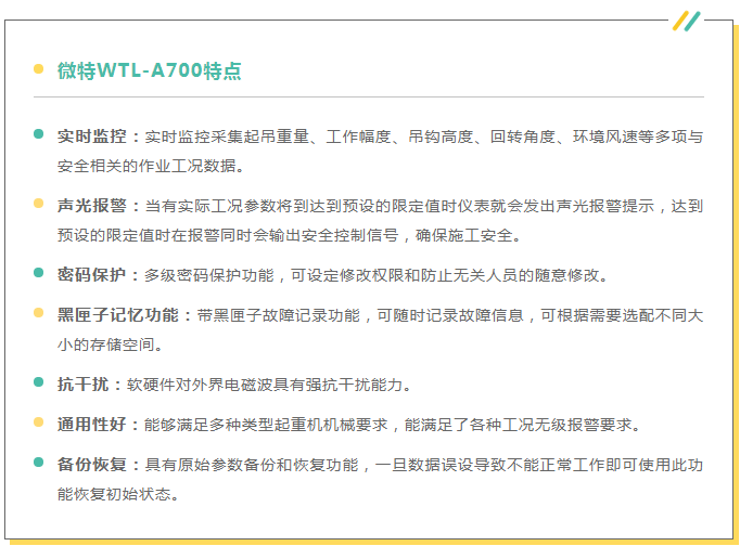 微特作為起重機安全監控管理系統品牌的領導者,一直致力于為客戶提供有價值的產品和服務。希望通過我們的產品將起重機安全事故率降到最低,為客戶提供更加可靠的安全管理解決方案。