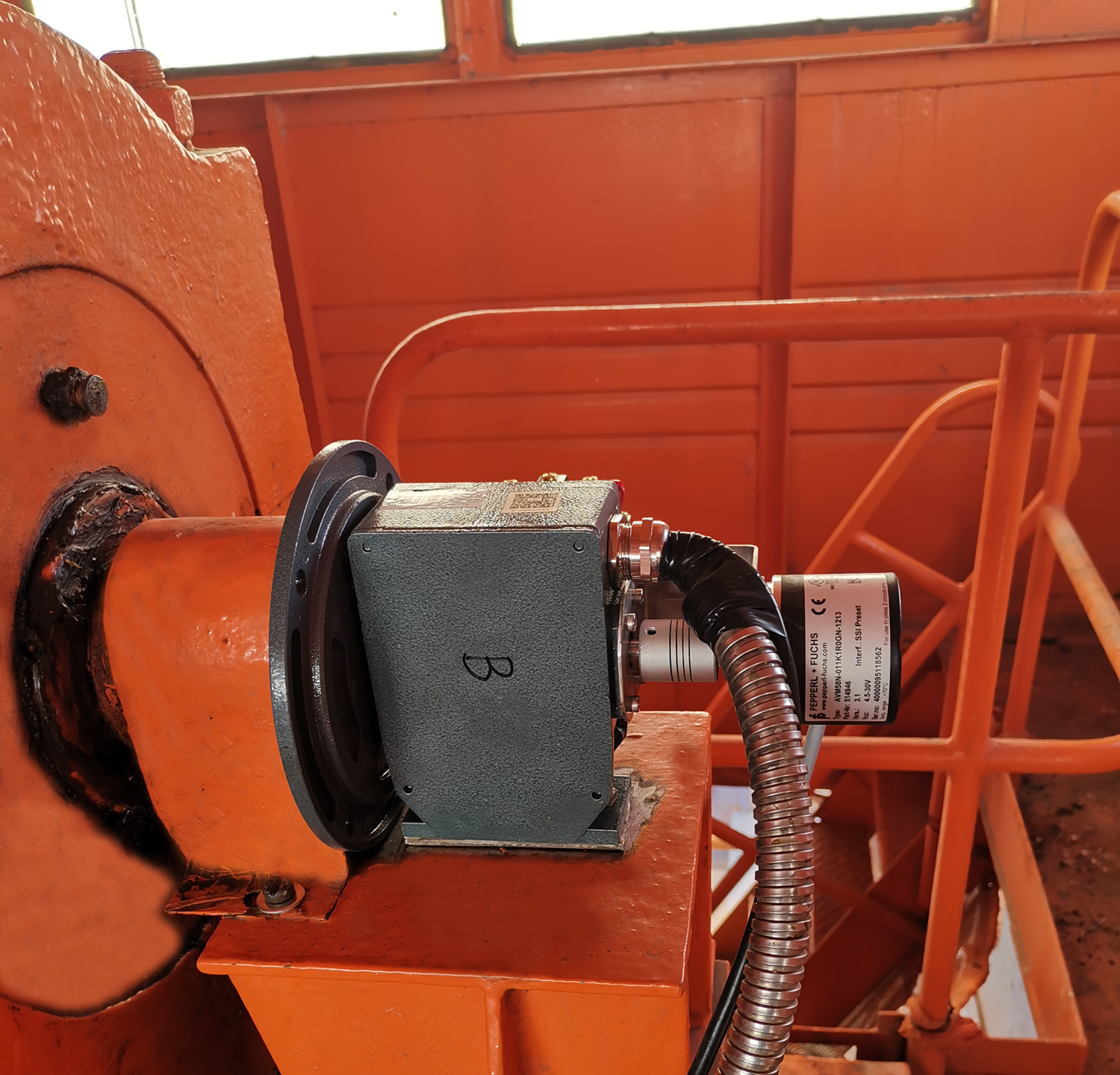 機械旋轉限位開關通過旋轉機構機械式控制吊鉤的上下極限,旋轉限位開關量信號給下位機電路板通過程序顯示吊鉤的限位狀態,編碼器信號輸入到小車下位機控制箱,下位機將采集到的數據通訊給司機室下位機,下位機再通訊到工控機,顯示器顯示數據,司機室下位機控制輸出。