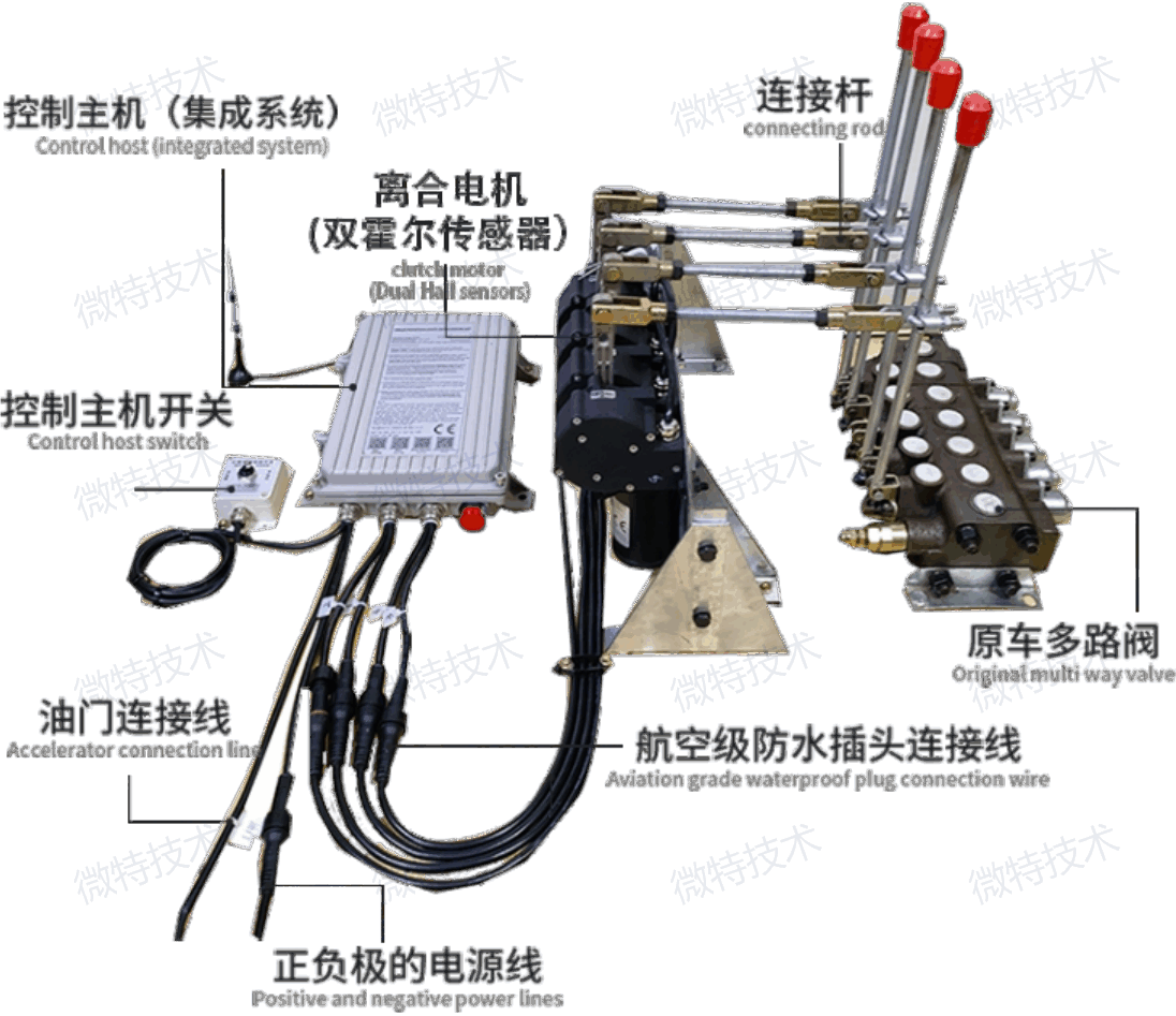 可根據每臺車量身定做,無線遠程控制距離約為50~500米(無阻擋無干擾距離),配置大功率收發模塊,信號更穩定,操作更靈敏!遙控器設置了安全保護系統,當遙控器故障沒信號或電池沒電,或緊急情況下,按下電源開關,所有的液壓操作桿自動復位回中,機器自動停止,油門自動回到最小!