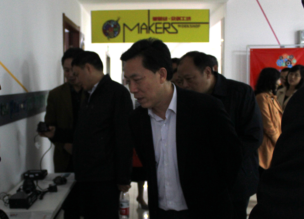 上圖:在眾創工坊郭主席一行參觀創客制造的產品展示