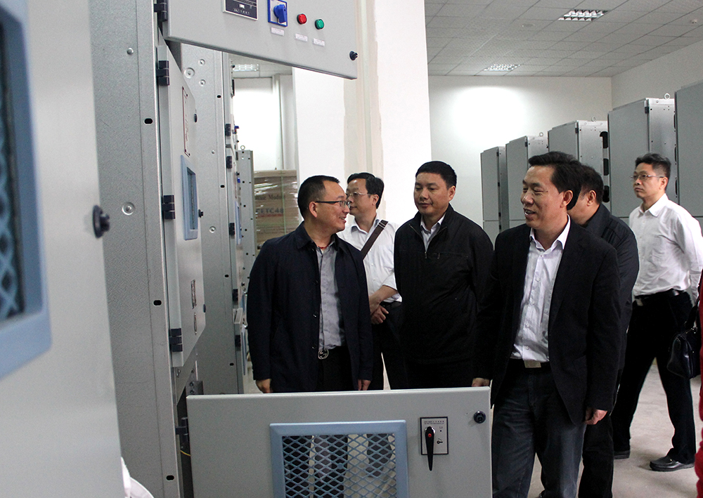 郭主席一行來到創業企業:普泰克電力科技有限公司。上圖為普泰克總經理易鋼在生產車間向來訪領導介紹公司產品。