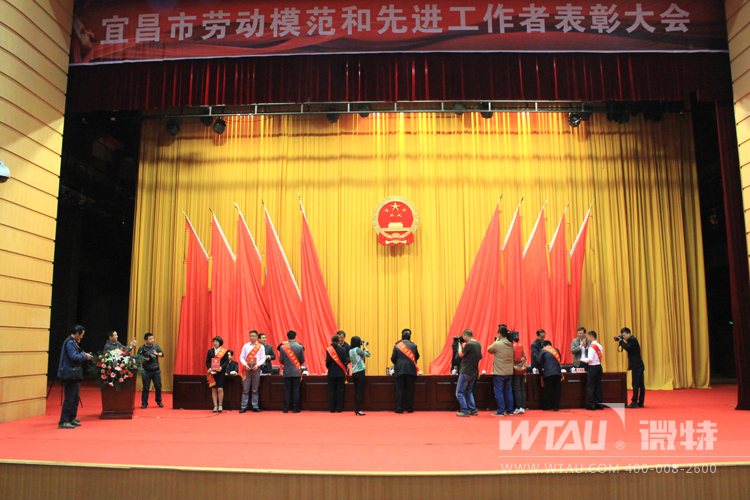 4月26日,宜昌市勞動(dòng)模范和先進(jìn)工作者表彰大會(huì)在宜昌劇院隆重舉行,我司研發(fā)工程師謝邦天被授予“宜昌市勞動(dòng)模范”稱(chēng)號(hào)。宜昌市市委書(shū)記黃楚平,市長(zhǎng)馬旭民,市政協(xié)主席李亞隆,市統(tǒng)戰(zhàn)部部長(zhǎng)、工會(huì)主席劉學(xué)甫等領(lǐng)導(dǎo)參加了此次會(huì)議并向勞動(dòng)模范授獎(jiǎng),會(huì)議由馬市長(zhǎng)主持召開(kāi)。