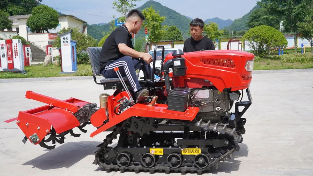 在交接農機設備后,村干部與村民們一同試用了雙人采茶機、自走履帶旋耕機等農機設備。這些設備的高效便捷讓村民們紛紛表示贊嘆,有了這些設備以后下地干活輕松多了。