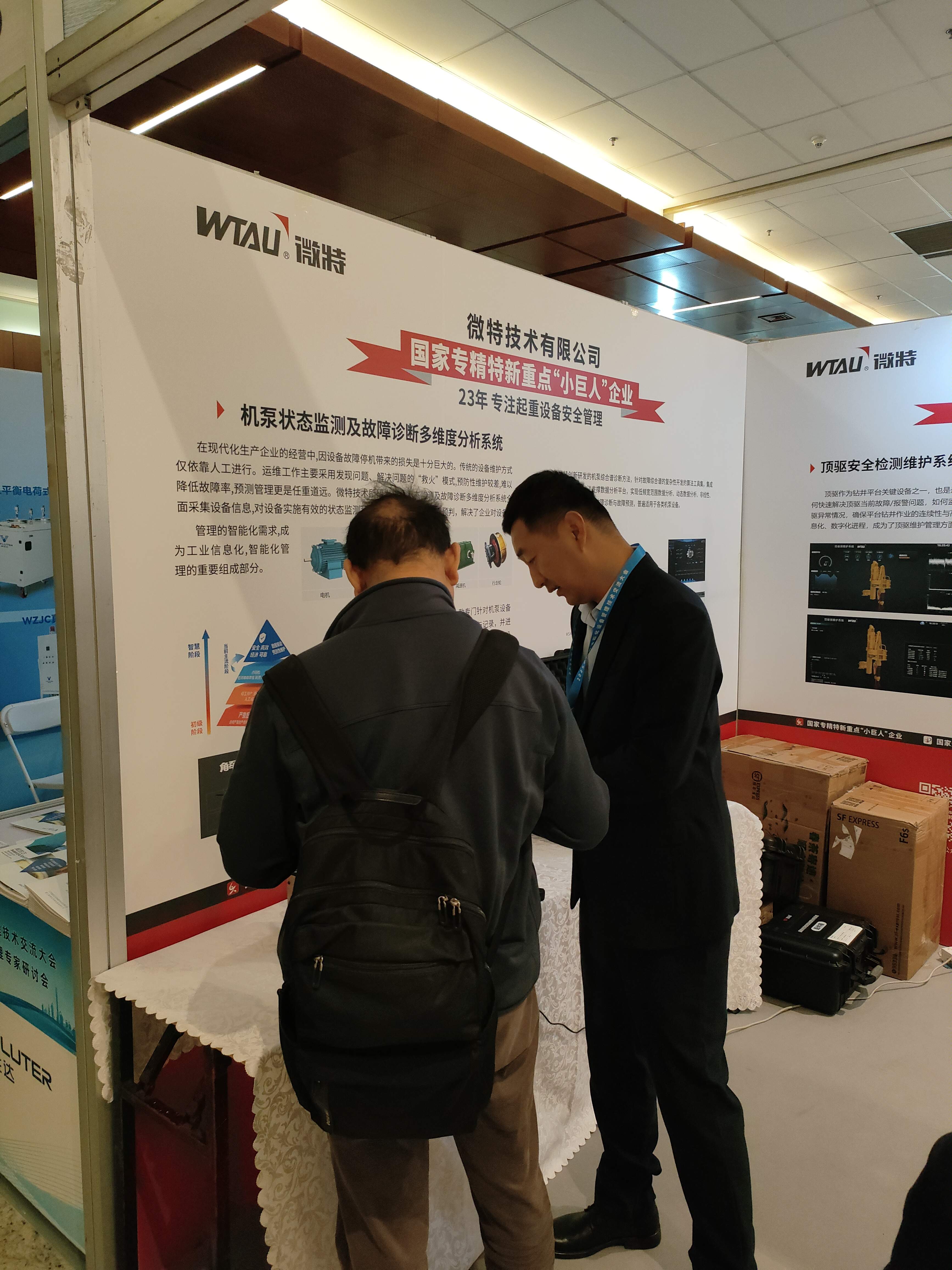 會議期間,同步舉辦了技術裝備展,展示最新的石油技術和設備。微特攜便攜式鋼絲繩在線檢測系統、便攜式旋轉設備振動分析等多款產品亮相,吸引眾多觀眾駐足。微特技術團隊現場為客戶講解產品原理與應用案例,針對客戶疑問提供專業解答,充分展現了微特在設備安全監測領域的技術實力與創新能力。