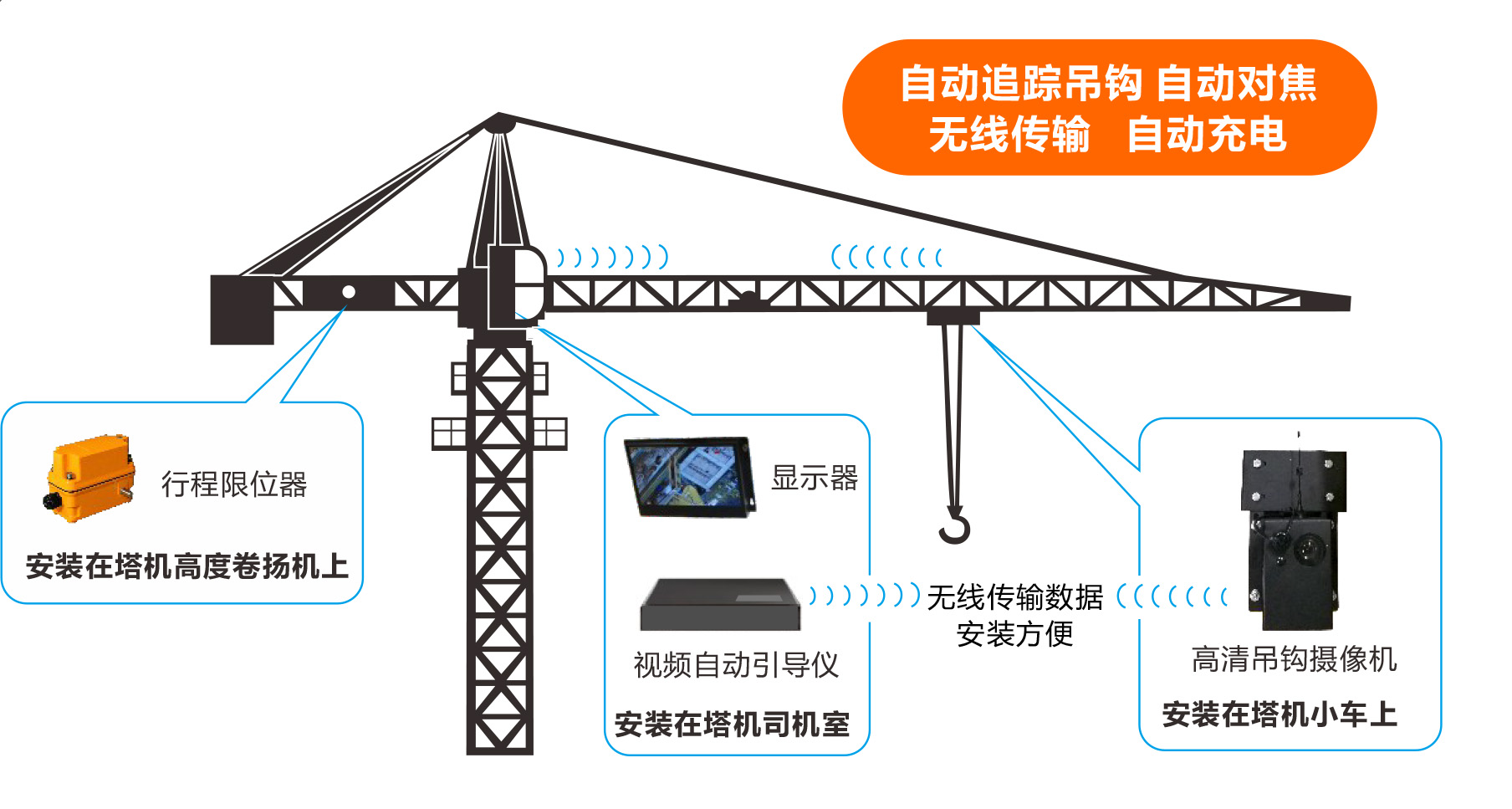 2、附加安裝,不改變塔吊原有線路和結(jié)構(gòu),不會(huì)產(chǎn)生任何負(fù)面效果。