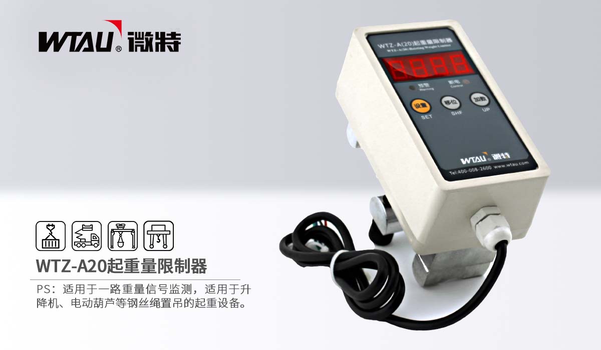 WTZ-A20起重量限制器用于一路重量信號監(jiān)測,適用于升降機、電動葫蘆等鋼絲繩置吊的起重設(shè)備。該型號儀表可替換WTZ-A50、WTZ-A60起重量限制器使用。