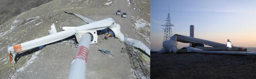山西某風電場43#塔筒從中、下段法蘭連接處折斷倒塌,主機隨同塔筒上段和中段朝著主導風向北偏西60度方向,法蘭盤脖頸距端部12mm處撕裂近三分之二(連接螺栓83孔),三分之一螺栓斷裂(42個),中塔筒下法蘭約三分之一撕裂隨中塔筒倒下。