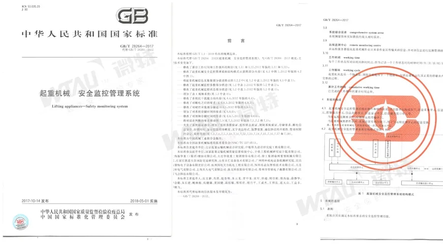 2012年7月中華人民共和國國家質量監督檢驗檢疫總局、中國國家標準化管理委員會發布GB/T 28264-2012《起重機械 安全監控管理系統》