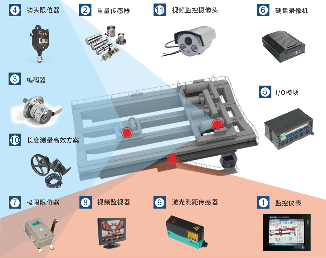 微特WTSA-HDVS(800)Y型工位視頻監控系統,是在地面固定工位對準鋼包耳軸的位置安裝攝像頭,在行車、指吊室、主控制安裝監視器,當本跨的行車運行至該工位上方時,三地顯示器同步實現觀看板鉤掛鉤、脫鉤過程,徹底解決因視線盲區、光線昏暗、指揮失當所導致的掛鉤事故。