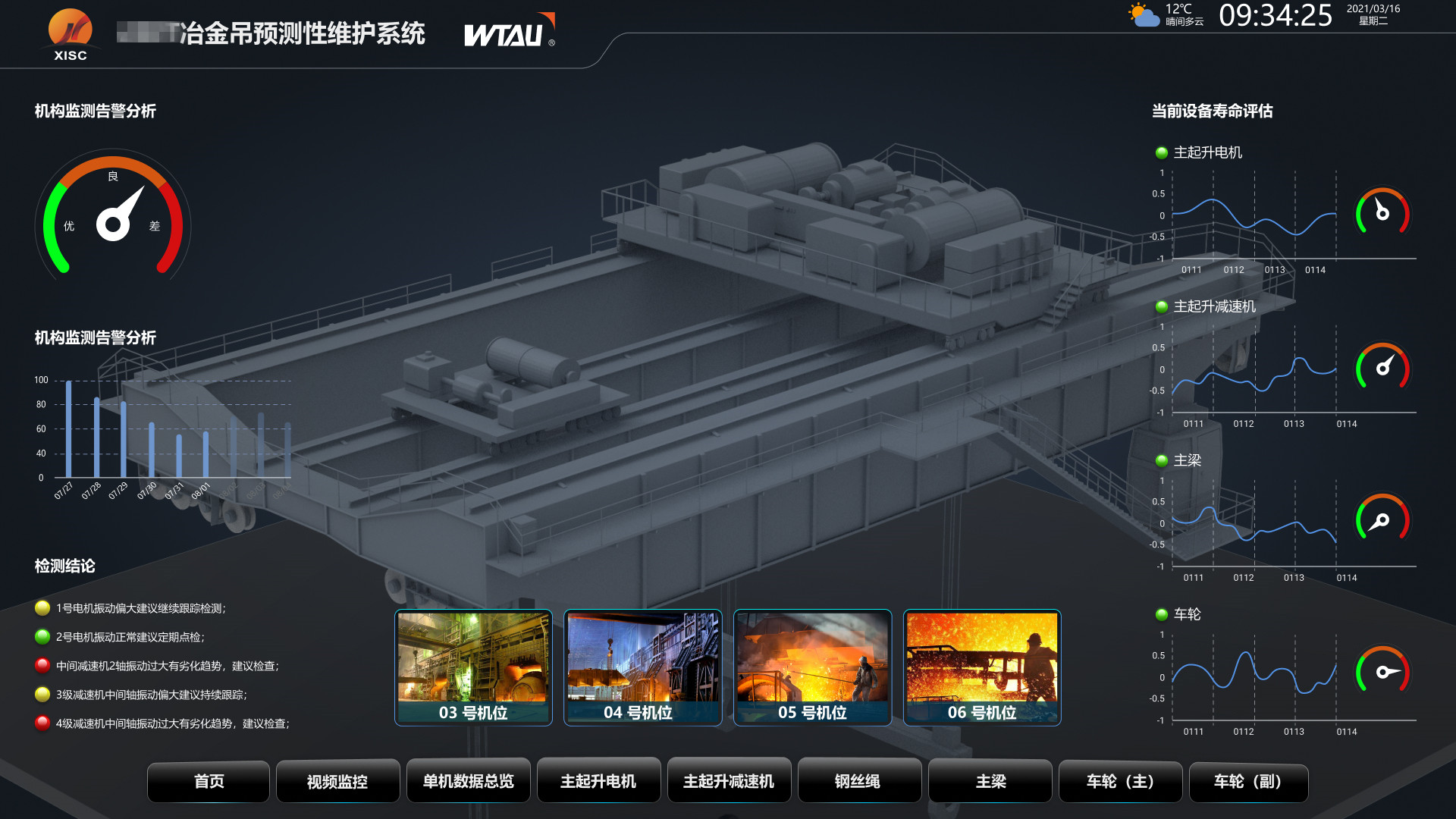 隨著5G傳輸技術的不斷發展與進步,微特成功在湖南華菱湘潭鋼鐵為遠程起重設備建立運維診斷分析系統,對起重設備各個核心關鍵部位實時監測,通過大數據進行分析,讓設備開口說話,把故障提前排除,做到高效安全可靠運行。